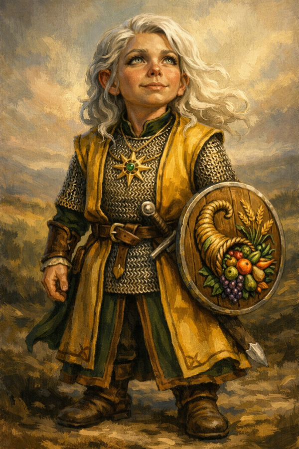 Balilia è conosciuta come la "Dea della Prosperità e della Salvaguardia" è raffigurata come una bellissima rappresentante della razza Halfling. I suoi capelli biondi sono lunghi e ricordono le spighe di fertile grano. La sua pelle è caratterizzata da riflessi dorati che simboleggiano la prosperità. Balilia ha uno sguardo fiero ed intenso ma al tempo stesso rassicurante e caloroso. La divinità indossa una corazza di metallo luminosa e splendente che simboleggia la sua natura protettrice e guardiana. |