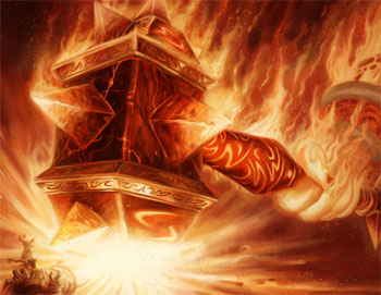 Quando il chierico lancia questo incantesimo una sfera infuocata parte dalle sue mani colpendo il bersaglio selezionato che si trovi entro il raggio d'azione della magia. La vittima, dunque, subirà 2d4 danni da fuoco magico + 1 danno supplementare ogni 2 livelli di lancio della magia oltre il secondo (2d4 fino al 3° livello, 2d4+1 dal 4° al 5° livello, 2d4+2 dal 6° al 7° livello, e così via...) fino ad un massimo di 2d4+4 danni al 10° livello di lancio. La vittima, quindi, potrà dimezzare i danni subiti superando un tiro salvezza su riflessi. Il componente materiale di questo incantesimo è una pepita di speciale carbone nanico imbevuta nella pece dal peso di 0.2 libbre e dal costo di 10 monete d'oro che si consuma al momento del lancio della magia. |