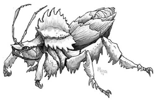 Un insetto grande come un cane di grossa taglia, dal carapace robusto di colore grigio. Dalla sua testa spuntano due grosse antenne e le sue fauci sono leggermente appuntite ad imbuto.